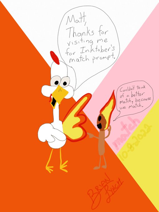 Inktober Match. Thanks to @CandleKathleen for letting me use her character Matt Stick. #haroldandhishotwingofjustice #hotwingofjustice #thedailyharold #delightthecandle #mattstick #inktober #inktober2022 #match #art #cartoon #comics #comicbooks #YourNewFavoriteArtist #BrianLynch