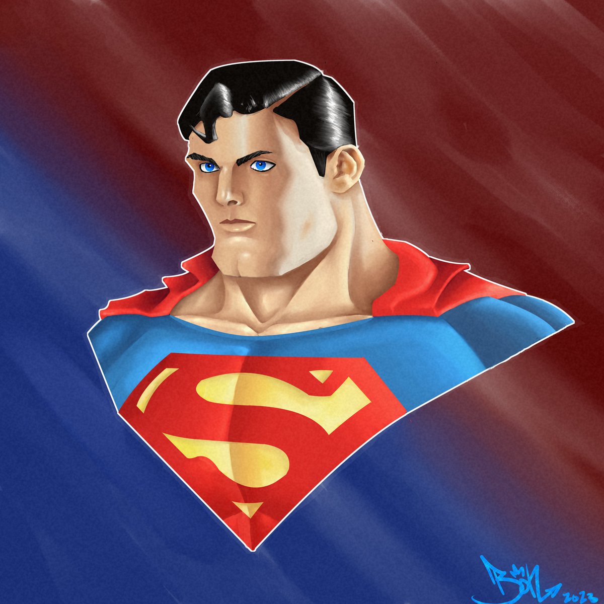 The Dark Knight Returns Superman, (Christopher Reeves) Digital Oil Painting Not a portrait artist but I think it looks like him as Supes in TDKR comic book. #Superman #digitalpainting #TheDarkKnightReturns #digitalart #comicbook