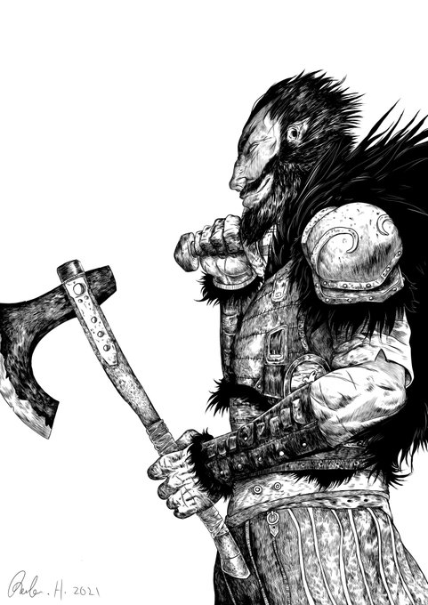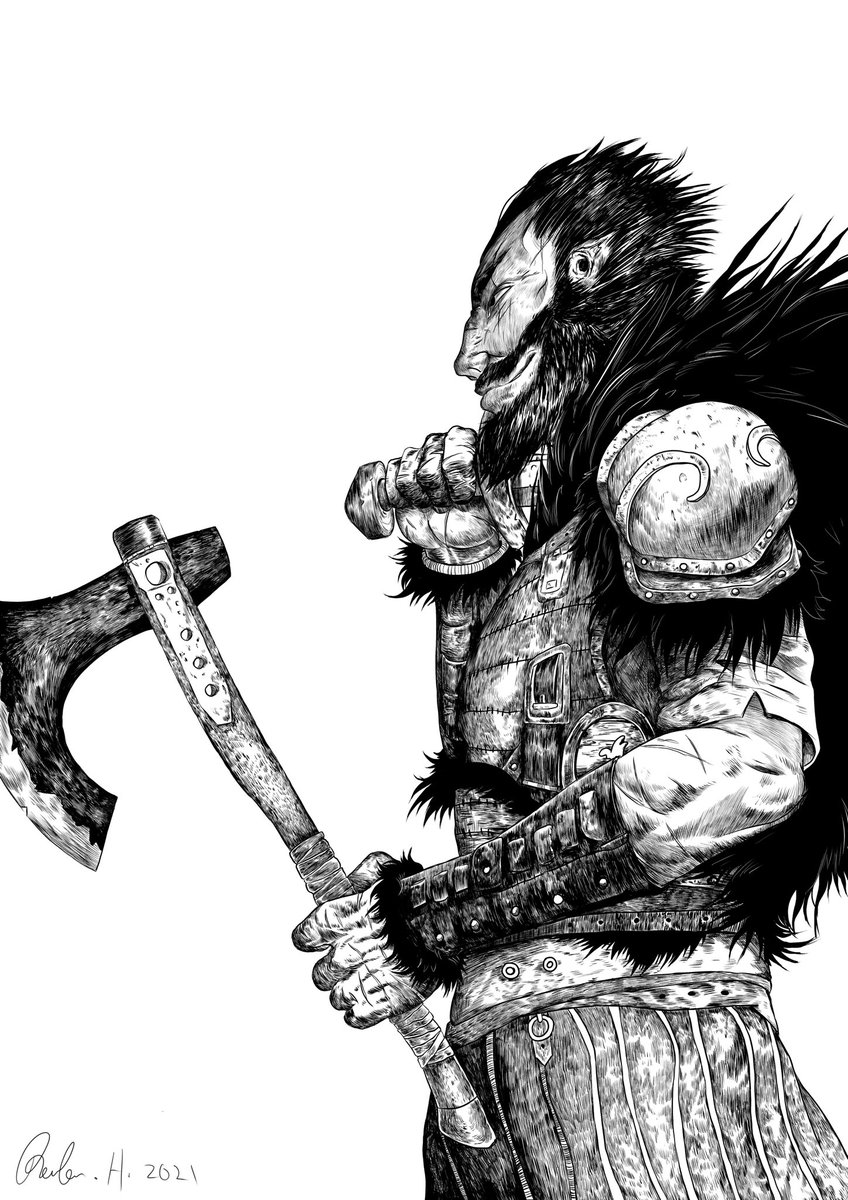 Inktober Day 13: Whirrun of Bligh (The First Law) - “Armour is part of a state of mind in which you admit the possibility of being hit.” #inktober #inktober2021 #whirrunofbligh #thefirstlaw #joeabercrombie #art #arte #artsy #digitalart #illustration #fanart #fantasy #drawings
