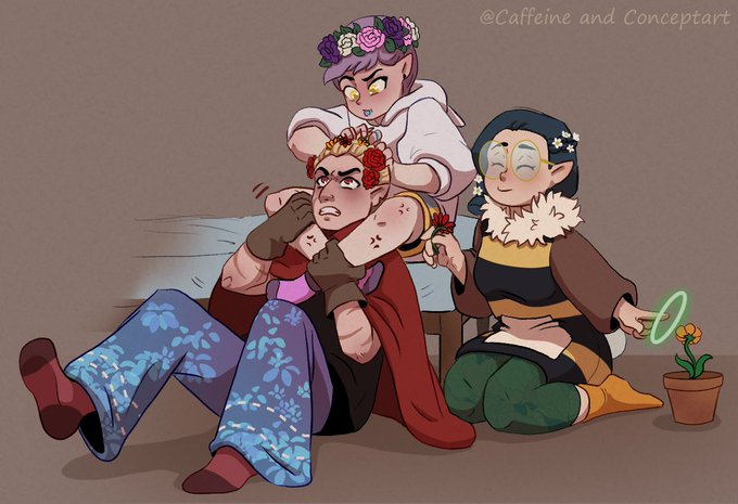 Part of a larger set of doodles. Amity is going to give Luz a perfect 'human sleepover' to cheer her up, which means she is braiding EVERYONE's hair, even if she has to snap Hunter's stupid neck to do it. #toh #theowlhouse #Amity #Huntertoh #willowtoh #tohfanart #thegoldenguard