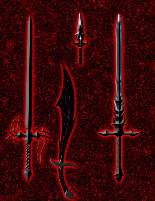 Rediscovered some old weapons I made, so in honor of #TheLegendsofVoxMachina, here are some of my Shadowfell weapons and my version of Craven Edge from the first campaign. #ttrpgfamily #dndart #CriticalRole #criticalrolefanart