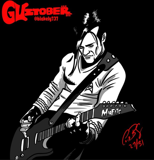 For Guitober today I drew Doyle from the Misfits, aka Doyle Wolfgang von Frankenstein! Not the most technically amazing guitarist on the list, but still one I listen to all the time! The Misfits @themisfits #TheMisfits #DoyleWolfgangvonFrankenstien #guitober #inktober