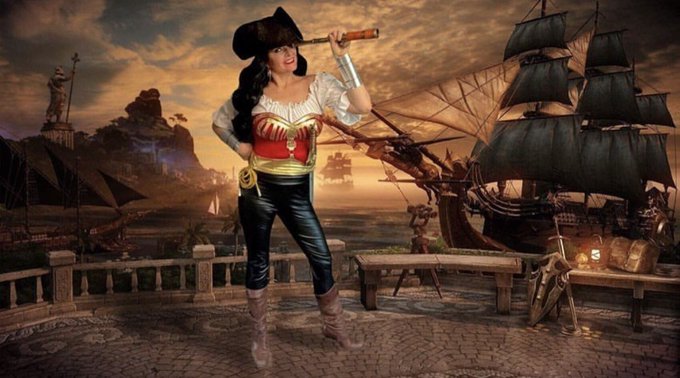 It’s #themyscirathursday & #PirateWonderWoman is sailing the high seas around the Amazons’ island, defending her territory & ready to take on any scurvy knaves who challenge her boundaries. Original photo by me Edit by @brian_thomas0509 #pirate #cosplay #wonderwoman #dccomics