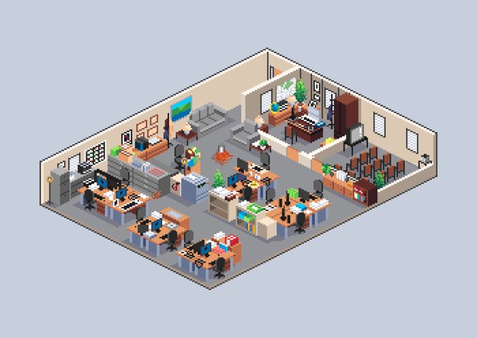 The Office US. Done as part of a Christmas gift for someone. A lot of fun to do but hard to get some of the details in! #pixelart #isometric #ドット絵 #theofficeus