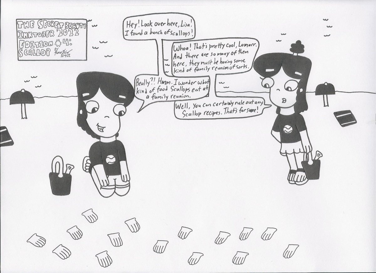 Lamarr and Lisa go to the beach and discover an entire family there in the fourth #inktober #thesecretbeautycomic: Scallop.