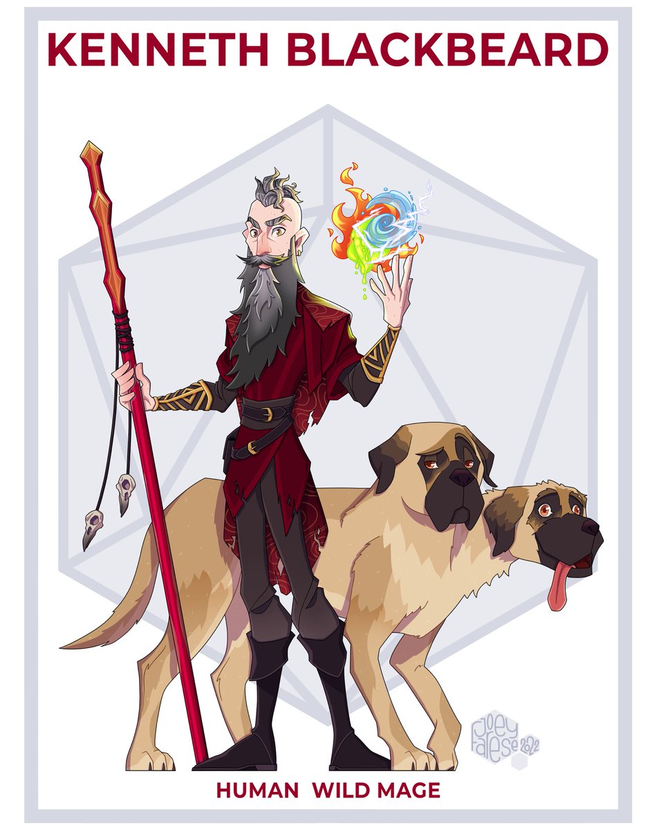 Kenneth "Blackbeard" became a member of a mercenary group called The Hell Hounds after he was captured by them as a young man, but owes them his life. • #characterart #characterdesign #dnd #dnd5e #dndart #charactercommission #thewizardssketchbook