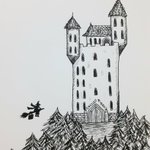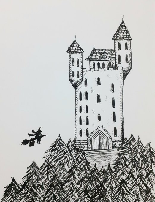 Day 8 of #inktober2021 and today's #picktober word is Cackle, so I did a childhood favourite, Cackle's Academy 🙂 #art #illustration #october #watercolour #Inktober #cacklesacademy #TheWorstWitch #Halloween