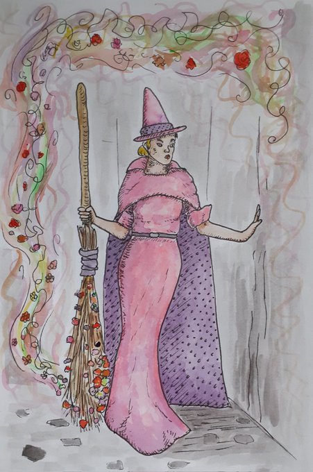 Day 20 of #inktober2021 and today's #picktober word is Pentangle, so I have done Miss Pentangle 🧙♀️ #art #illustration #october #watercolour #Inktober #pentangle #MissPentangle #PentanglesAcademy #TheWorstWitch #drawing #kidlitart #kidlitillustration #halloween