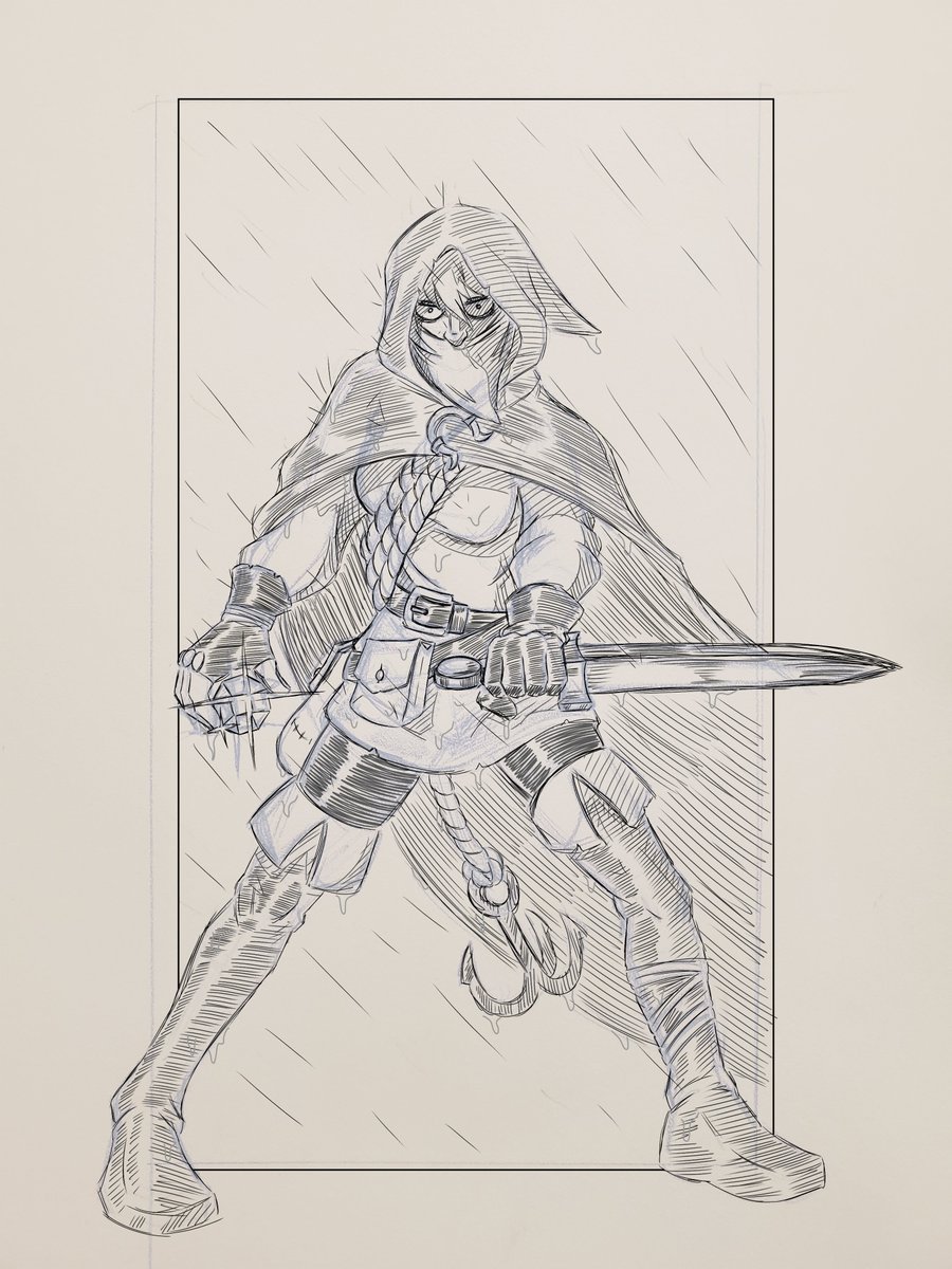 Finished up the thief drawing I've been working on. My character's a thief not a rogue! #dnd #dndart #adnd #osr #ttrpg #oldschoolttrpg #thief #dndcharacter