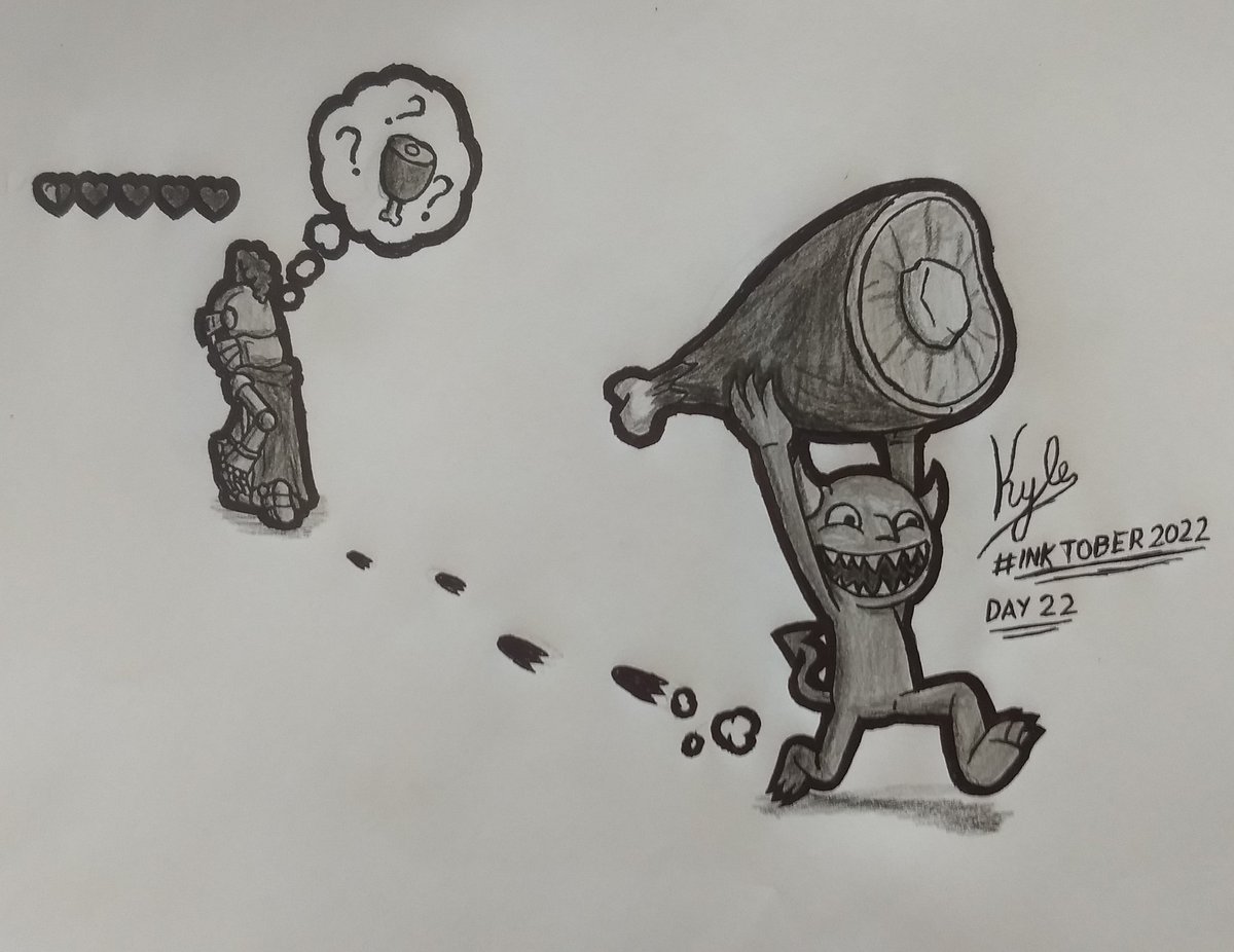 Inktober day 22. Heist. Little things like “locks” and “laws” and “basic morals” aren’t going to keep this goblin away from his treasure. #ink #inktober #inktober2022 #inkdrawing #heist #robbery #stealing #goblin #thief #goblinthief #gobby