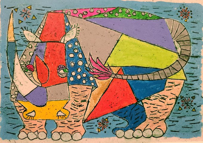 「カラフルサイ」 14.8cm×21cm 絵描きだけど、別の技法と出会い、描いた作品を使って版画作品も作ったりしています。 記念すべき初期作品。 #カラフル #アクリル画 #版画 #thisisgallery #絵描きさんと繫がりたい 原画はこちらで販売しています thisisgallery.com/product/503999