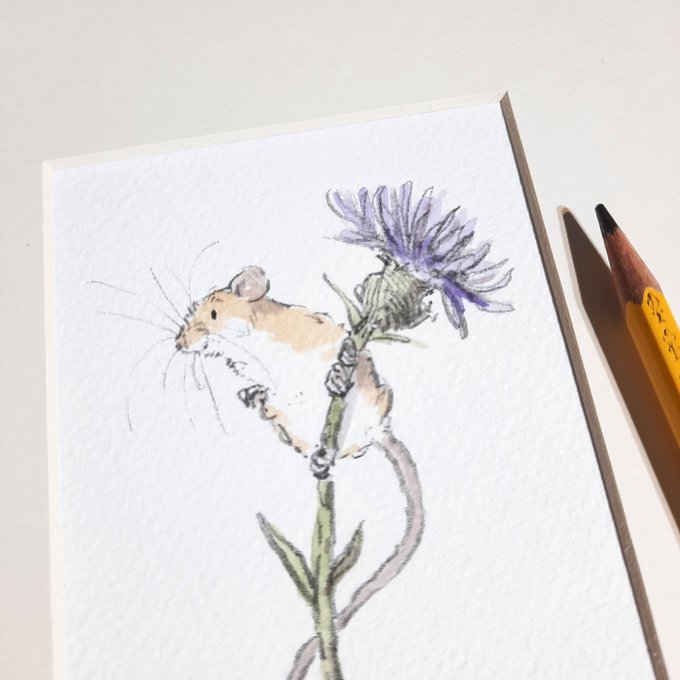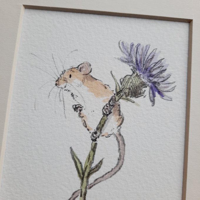 Hello, lovely people. I hope that you are having a fun day. Tomorrow, at 6pm GMT, I shall be selling some original watercolours and drawings. Prices from £70 to £100. If I can tempt you, I shall tweet tomorrow at 6 with the link. #mouse #thistle #watercolour