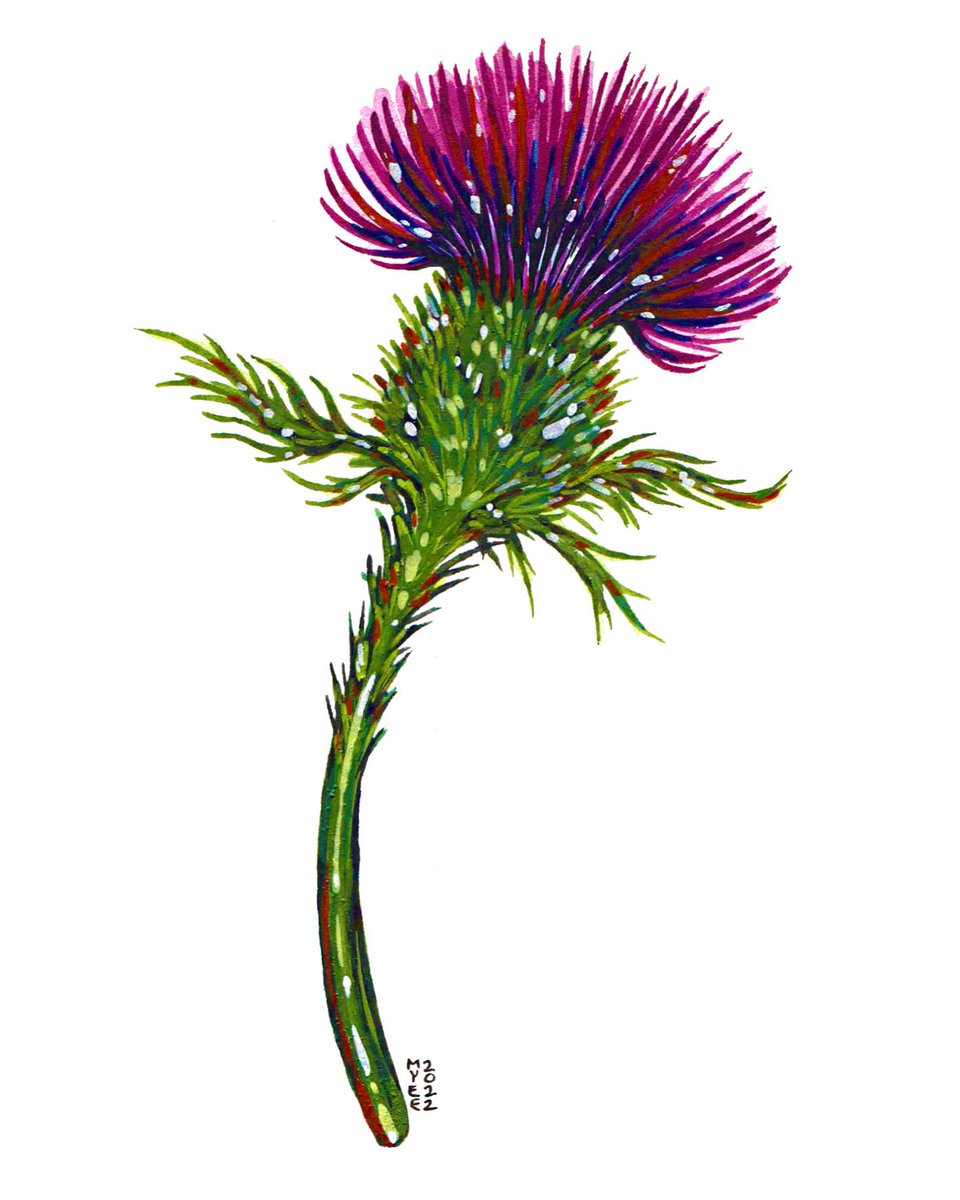 花 20211221 #thisisgallery で販売予定 #pendrawing #ペン画 #絵描きさんと繋がりたい #水彩画 #watercolor #伊島猫 #penart #penillustration #アザミ #thistle #花の絵