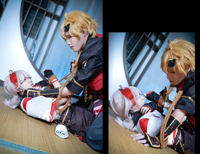 "ถ้านายอยากจะมาลองเรียนวิชาดาบกับฉันเพิ่ม...ก็มาฝึกกันตัวต่อตัวสิ คาซึฮะ😉" "ไม่เอาขอรับ😠" Thoma : Db.Shi l Kazuha : Azuka Photo by มิจจี้ #kazuha #Thoma #トーマ #原神 #コスプレ #コスプレイヤー #genshinimpactcosplay #genshinimpact #kazuhacosplay #ThomaKazu