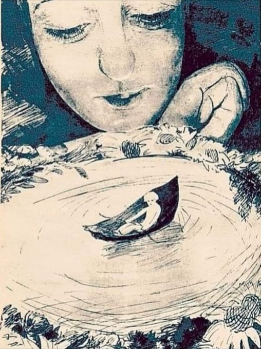 "Thumbelina" by Miturich Petr, 1936 #miturichpetr #thumbelina #illustration #andersensfairytales