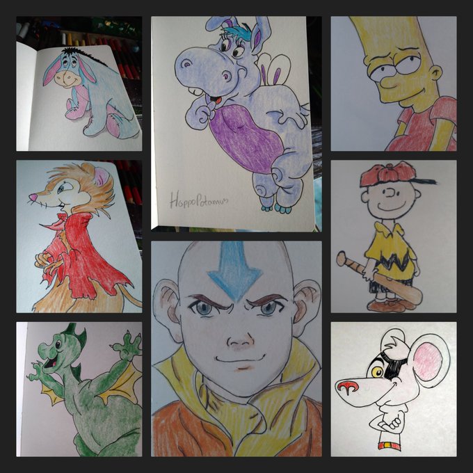 Todays #sketchbook pages are my completed #fanart challenge 🙃😄🎨 #ArtistOnTwitter #illustration #Watercolour #art #Artists #TheSimpsons #ThunderCats #Pokemon #TheMuppets #fraggleRock think 🤔🤪 I need a rest 🤗😊