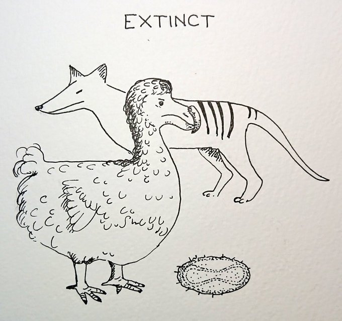 #dailydrawing2021 no 297b EXTINCT today's prompt word for #inktober2021 #inktober2021day24 #Extinct #dodo #thylacine #SmallPox #ink #dailydrawing no 502 @CobbinSteve1