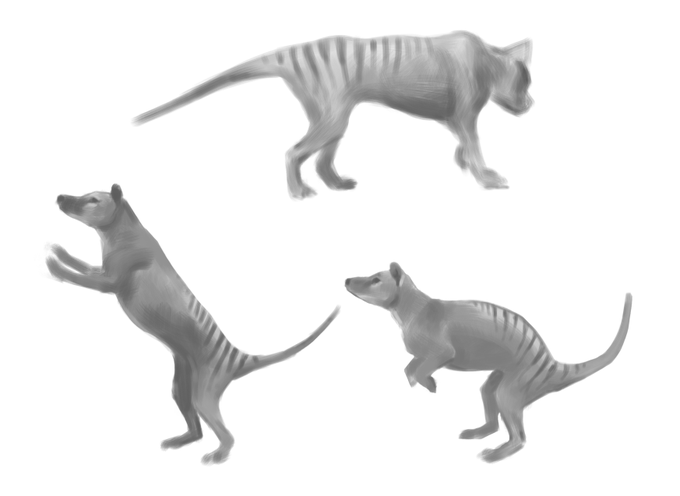 Reconstruction of a Thylacine based on restored photos and preserved skins. #paleoart #paleontology #thylacine #australia #animal #animals #photo #science