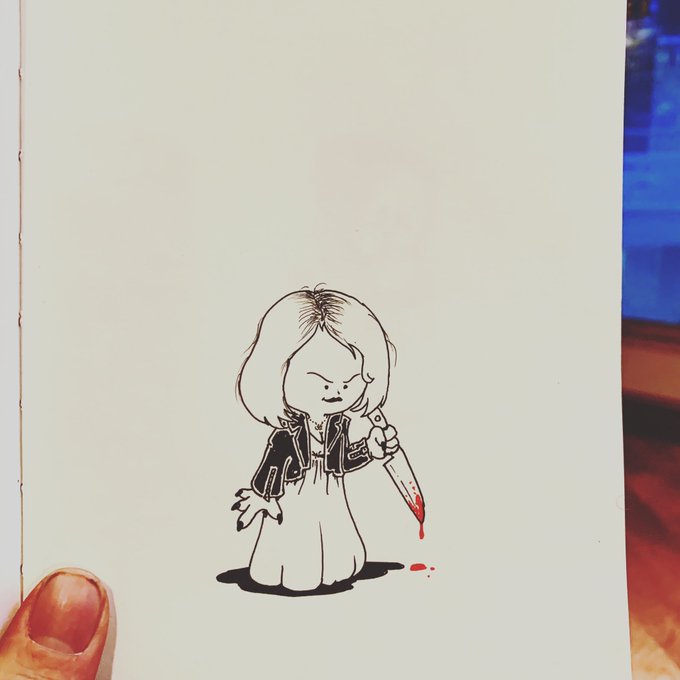 Spooky Month Drawings 28 : Bride of Chucky Your Wife ‘til the End #spooky #illustration #october #inktober #halloween #bride #brideofchucky #jennifertilly @jennifertilly #tiffany #horror #artwork #art #pendrawing #scary #drawing #cartoon