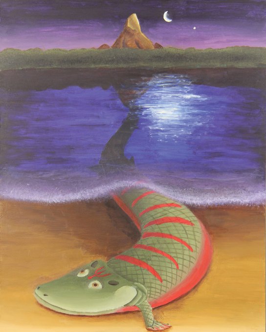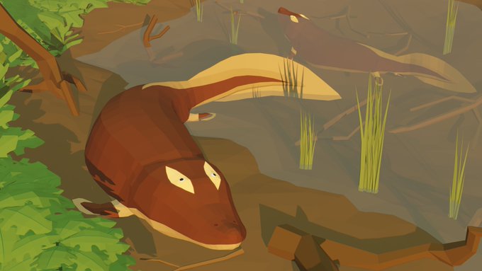 Fatty boy finished! LowPoly Tiktaaliks, somewhere while evening, during late devonian period I'm really proud of this artwork, maybe it went pretty fast, but I learned some stuff during it, I think it looks nice too! #lowpoly #paleoart #blender #tiktaalik #devonian twitter.com/g4b1233/stat…