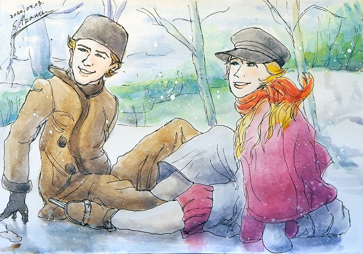 映画『ストーリー・オブ・マイライフ/わたしの若草物語』のジョーとローリーを描きました♪ Jo & Laurie"Little Women" #若草物語 #ストーリーオブマイライフ #LittleWomen #わたしの若草物語 #SaoirseRonan #シアーシャローナン #TimothéeChalamet #ティモシーシャラメ #ペン画 #水彩 #イラスト
