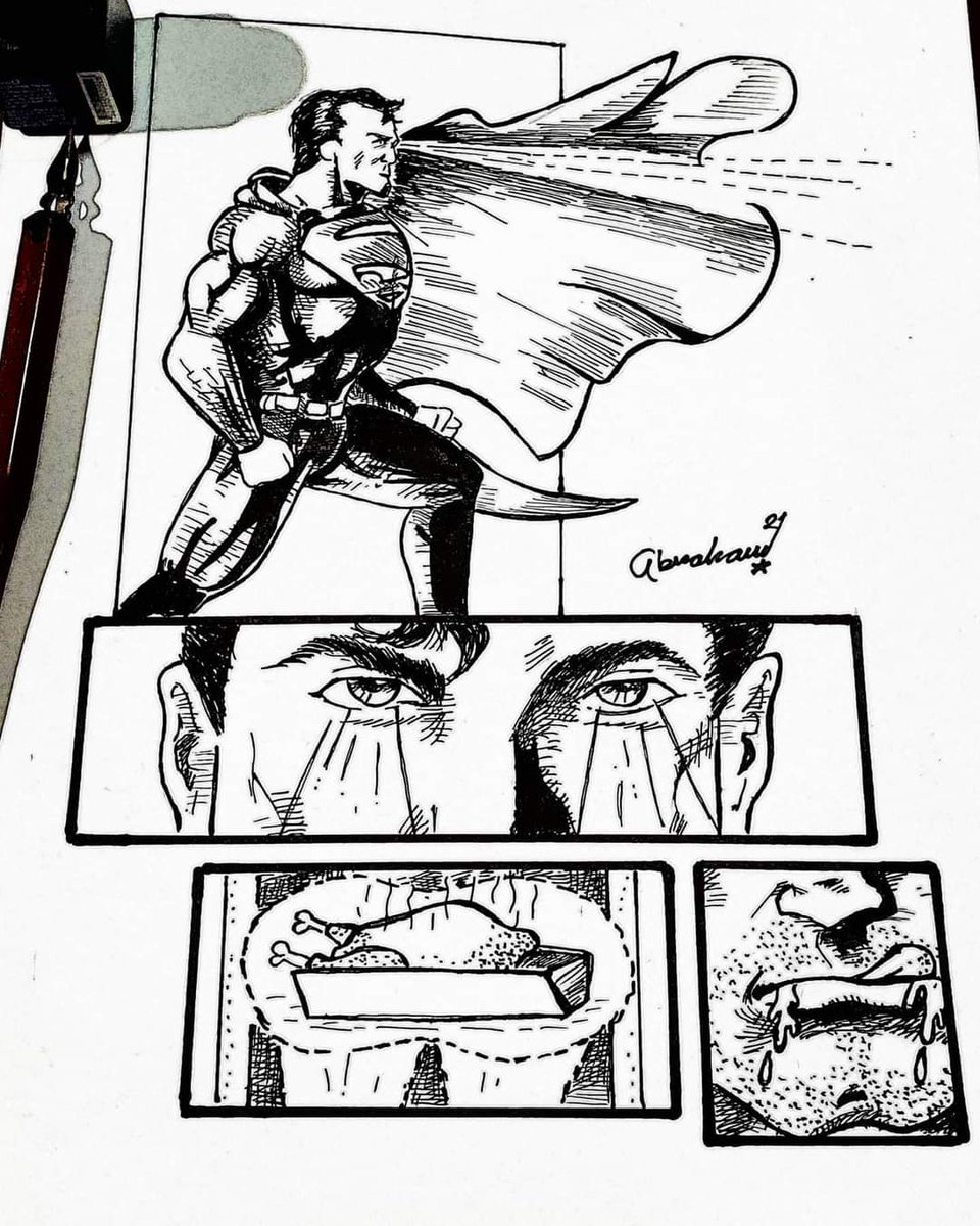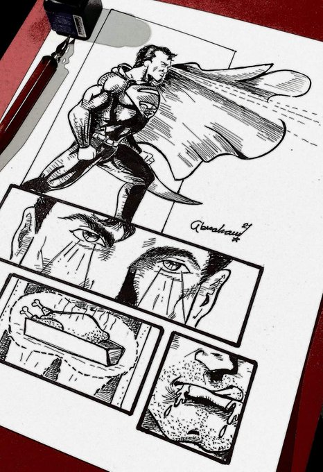 Vamos por el #Dia8 del #inktober #inktober2021 #inktobermexico #inktober2021day8 y la palabra #inktober2021watch #watch #mirar y quién mejor para mirar a través de todo que #superman #dc #dcuniverse #dccomics "echándole un ojo al pollo" #ink #tintachinaart... 👀🍗🤤