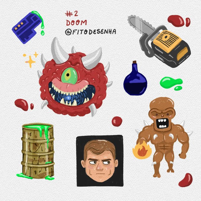 🔫 dia 2 - doom outro jogo de DOS, o primeiro em primeira pessoa que vi. tinha pavor dos monstros então nunca consegui terminar. #inktober2021 #inktober #tintubro2021 #tintubro #doom #inktobergames #inktoberday2