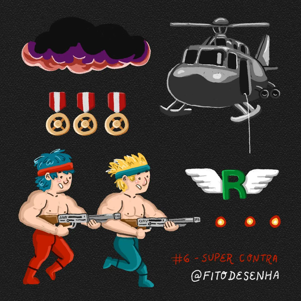 💥 dia 6 - super contra (nes) dois boys padrãozinhos inexplicavelmente sem camisa enfrentando inimigos esforçados mas sem mira alguma. o famoso "jogo de tirinho". #inktober2021 #inktober #tintubro2021 #tintubro #inktobergames #supercontra