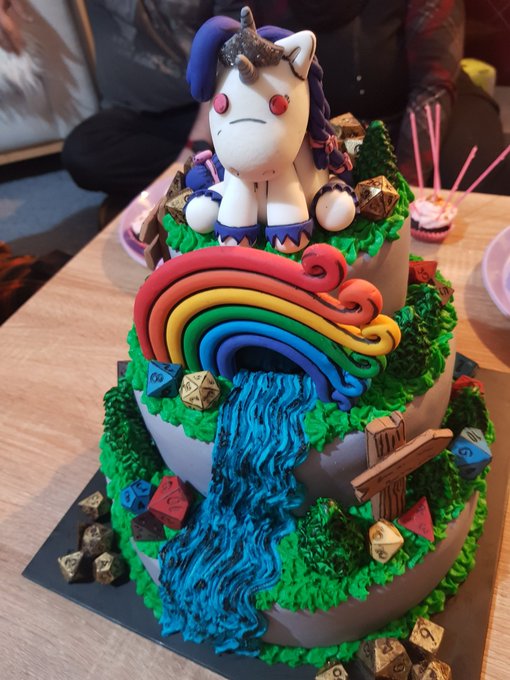 Had my belated Birthday party tonight and @MightyPotatoGal just knocked it out of the park making me a #TinyTinasWonderlands themed cake. 💕🌈🦄 #borderlands @GearboxOfficial @PlayWonderlands