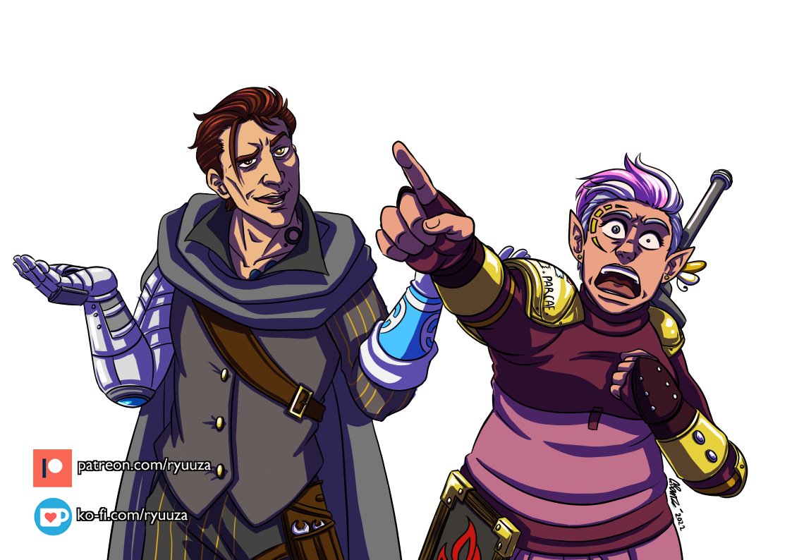 Comm for @d0nna_ake of their Wonderlands universe OC and Rhys. A pleasure as always. ❤️ #CommisionsOpen #Borderlands #TinyTinasWonderlands #OCArt
