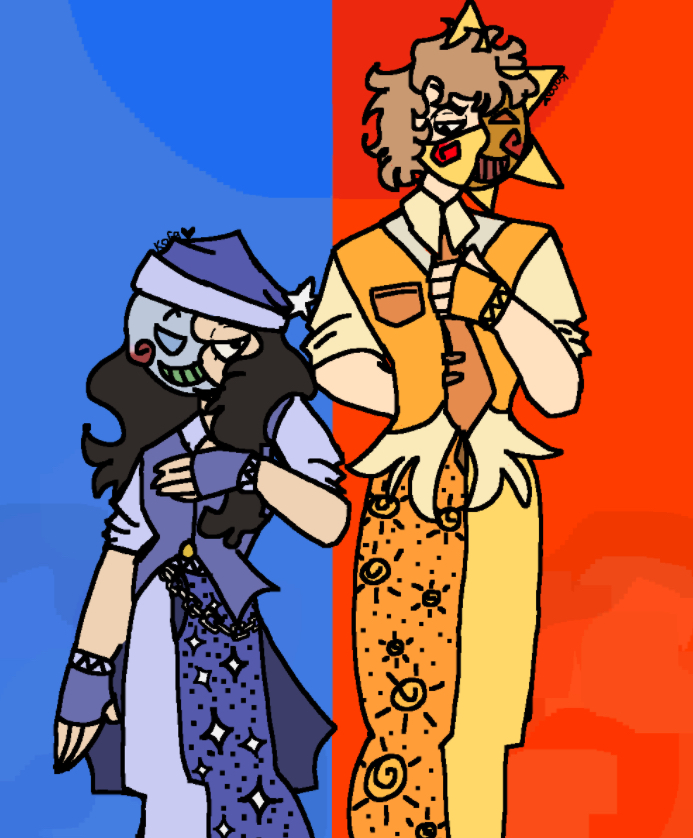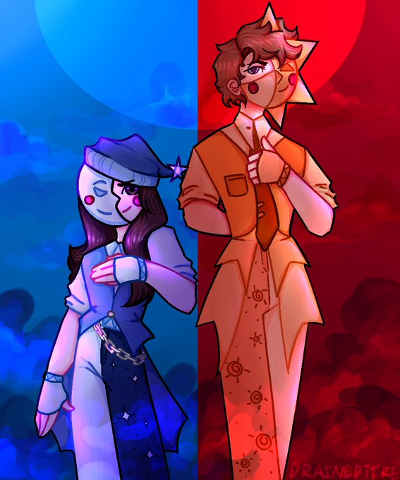 ITS THEM!! FUNKY LITTLE GUYS!!!!!!!!!! YAYYYY!!!!!!!!!!!!!!!!!!!! [RT and like if u wanna!] (notes: I love them!!!) #glowduofanart #tire200dtiys #aimseyfanart #ranboofanart #sundropfanart #moondropfanart #fnaffanart