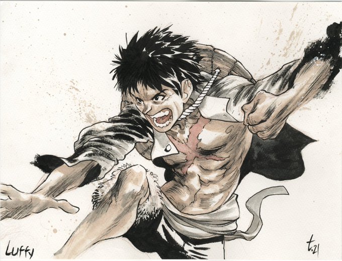 Día 14 #tirsink2021 One Piece LUFFY 🔥 (venta) Subasta hasta el 15/10/21 (18h00GMT+1). Más info: instagram.com/p/CVBC9taKs9M #inktober2021 #onepiece #anime
