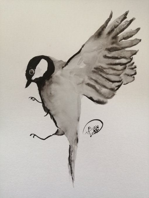 #inktober52 - #flight A great titmouse in flight 🙂 I plan to do another one for this inktober! So watch this place. #inktober52flight #inktober #inktoberflight #inktoberallyearlong #ink #birdart #titmouse