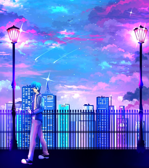 #drawtober2021 Day 17: Background Theme Cityscape practice~ I was originally going to draw Joker from Persona 5, but the blue&purple palette made me change my mind! Here's Itsuki Aoi from Tokyo Mirage Session ♯FE ♥✨ #TMS #TokyoMirageSessions #Inktober2021 #inktober2021day17