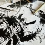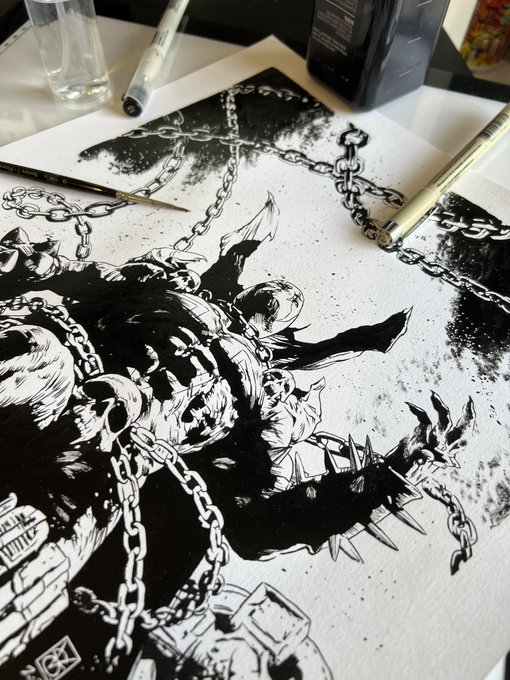 A step of the Spawn piece. It was the hardest to do but the most satisfying. I'll be sharing the scans soon. #spawn #imagecomics #valeriogiangiordano #kirbyscomicart #originalart #comics #comiccollector #comiccollection #illustration #artoftheday #toddmcfarlane #wip #inking