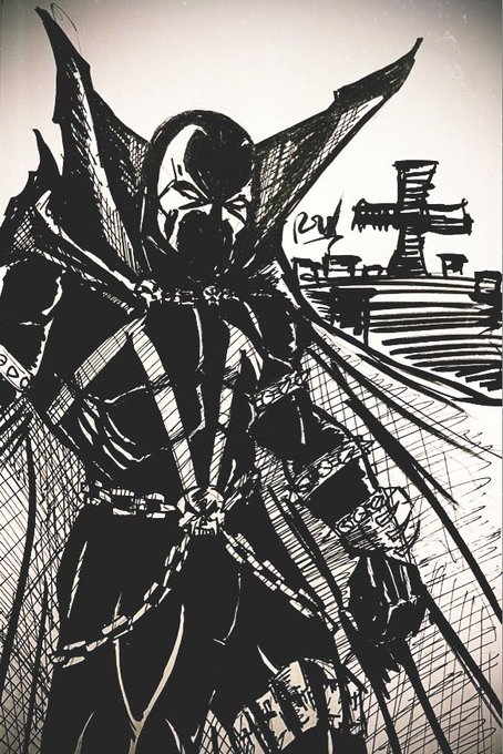 No Rules Inktober, Day 5 Fan Art: Spawn #ampartist #angusmcquadeprojects #inktober #inktobernoprompt #inktoberfreestyle #Inktober2022 #spawn #spawnfanart #spawntoddmacfarlane #toddmcfarlane #soulcalibur #scii #mortalkombat #mortalkombat11 #mortalkombatspawn #soulcaliburspawn #fgc