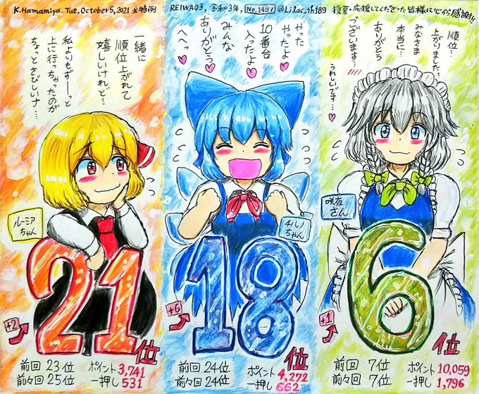 Congratulations to them.🎖️🎖️🎖️ #toho_vote17 #魂魄妖夢 👻🥇 #霧雨魔理沙 🌟🥈 #博麗霊夢 ⛩️🥉 #Touhou_Project #touhouproject #東方Project #東方 #touhou
