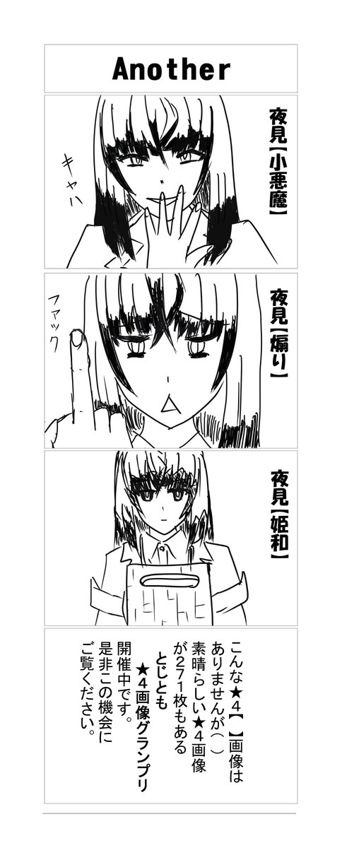 落書きCM6 落書きCMシリーズもこれで最後。もしかしたらこんな★4も出たかもしれない・・・。 【非公式】とじとも星4メイン画像グランプリ開催中 現在アンケートフォーム107件、Twitter1件の回答を頂いております。 ありがとうございます。4/27まで開催中。 #刀使ノ巫女 #とじとも #tojinomiko twitter.com/rave10_11/stat…