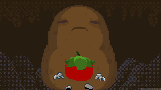 Inktober Day#12 - "Stuck" - Beware, an huge Potato is blocking the way...Bloom The Tomato is stuck inside a cave... what would you do? #inktober2021 #Inktober #Inktober2021day12 #Inktober2021day12stuck #pixelart #aseprite #8bitart #tomatobuster #Tomatoes #potato #indiegame