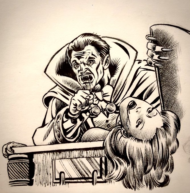 Day 14. No prompt. Tomb of Dracula. Not sure if I caught that “aged” feel to him, but enjoy! #inktober #inktober2021 #inktober2021day14 #inkdrawing #inks #inks #vampire #dracula #tombofdracula #marvelcomics #comics #comicart #sketch #marvel #horror #horrorart
