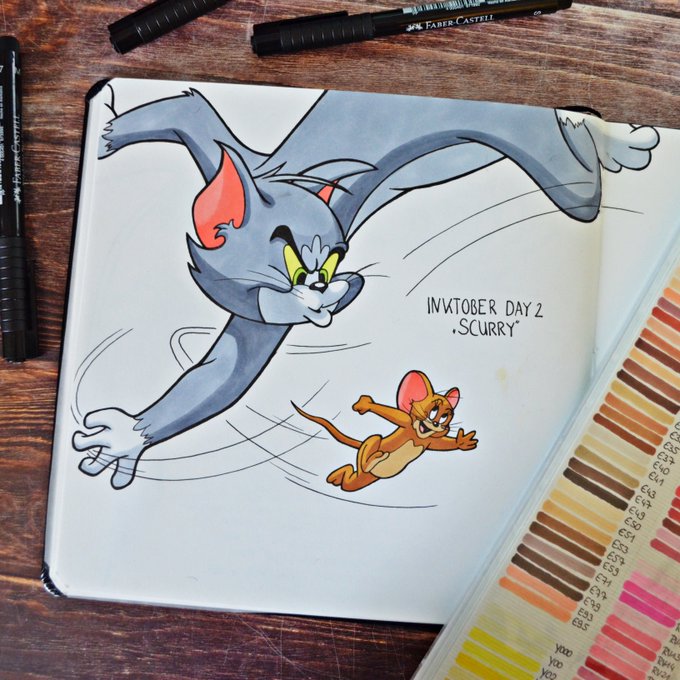 INKTOBER DAY 2 - SCURRY #inktober #inktober22 #inktober2022 #inktober2022scurry #scurry #tomandjerry #drawing #ink #fanart #tomundjerry