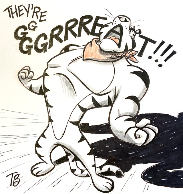 #TonytheTiger 🐯🐾 Today's live #art stream result! Thanks to those who came to watch & chat a bit! You make it fun! What's your fav #cereal? I was super excited when Oreo O's made a comeback! 😋 #frostedflakes #Kelloggs #mascot #Tiger #breakfast #ArtistOnTwitter