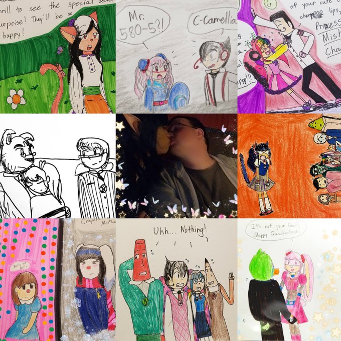 Somebody's just #toonenough to do this challenge. #artvsartist2021 Yup, there's me with the love of my life; @ShobonStudios .💕 #ToonTownRewritten #ToonTownCorporateClash #ToonTownFanArtFriday #fanart #crossover #collage #traditionalart #digitalart #becreative
