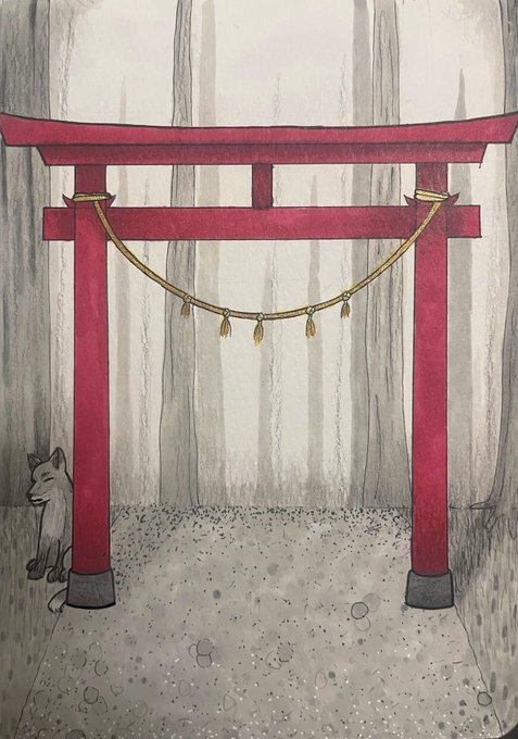 Torii Inktober day 10 #inktober #inktober2022 #yokaitober #inktoberday10 #inktober2022day10 #torii #toriigate #fox #kitsune