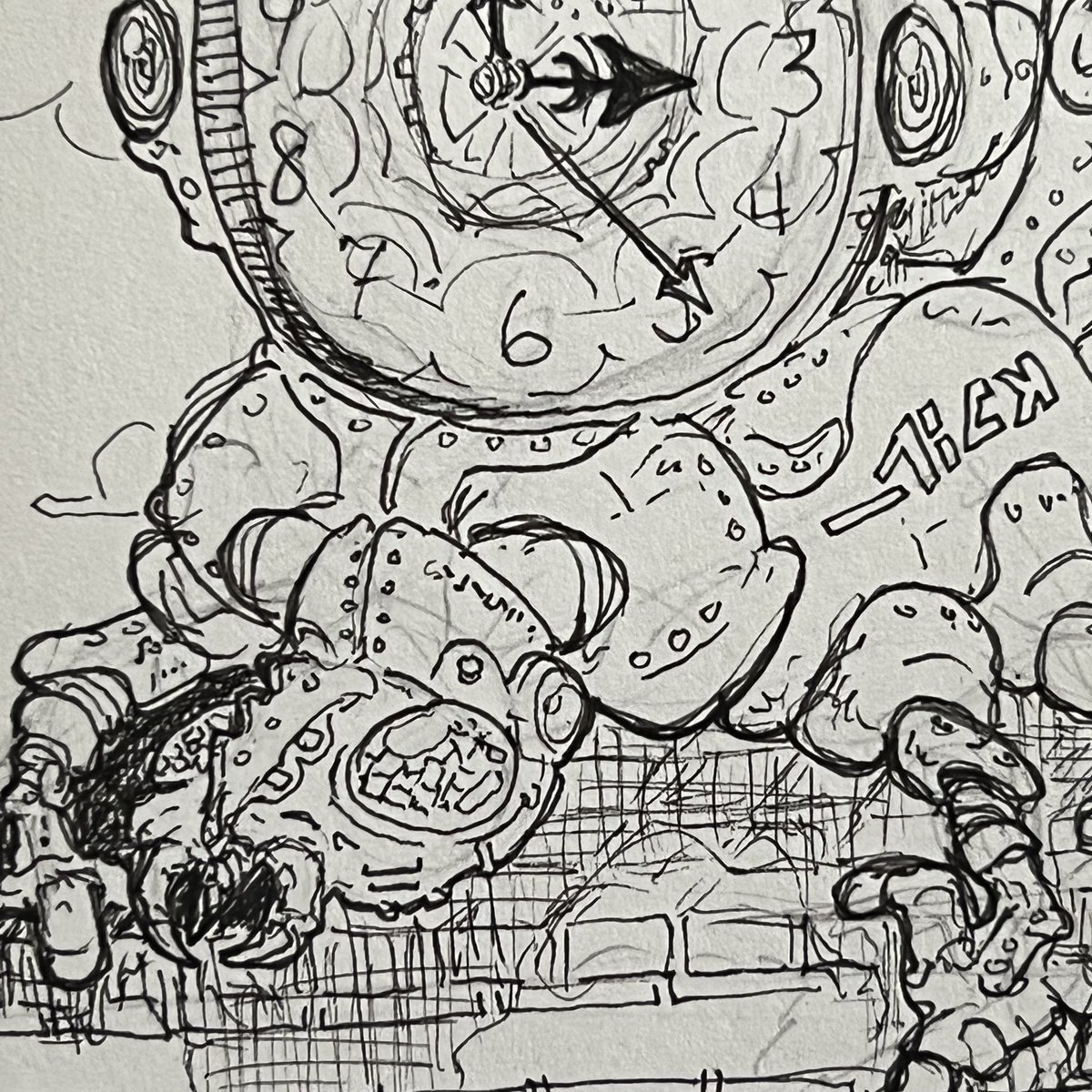 Catch up for #inktober2021 #tick. I like how the #toriyama and #miyazaki inspired #mech came out, but I wish I hadn’t attempted a bg at all #ink #traditional #lineart #conceptart more to come
