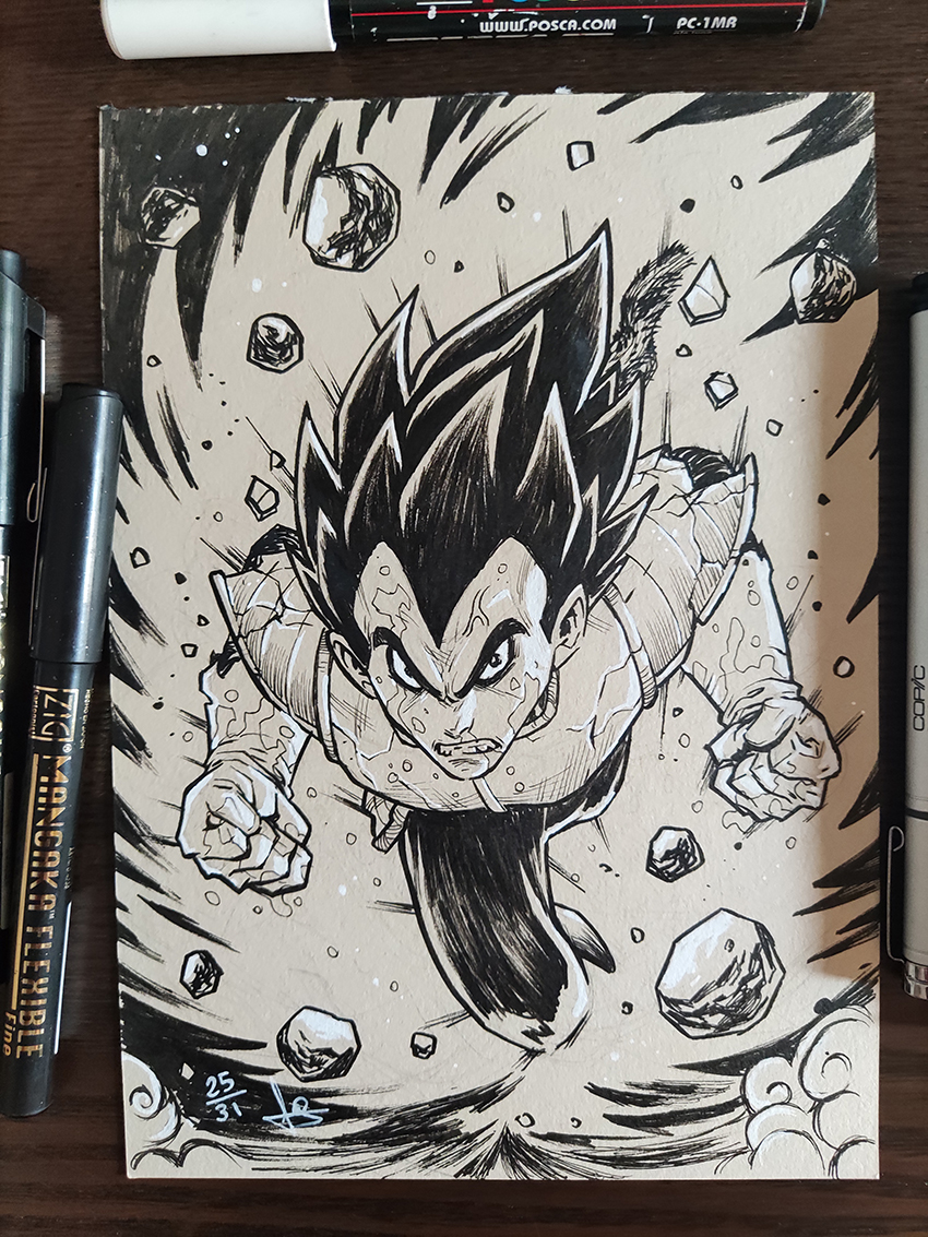INKRAGETOBER DAY 25. VEGETA! Inks & posca on A5 PaintOn. Reservas por DM. #inktober #inktober22 #inktober2022 #inkragetober #inkragetober22 #art #comic #traditionalart #inks #posca #dragonball #dragonballz #vegeta #toriyama