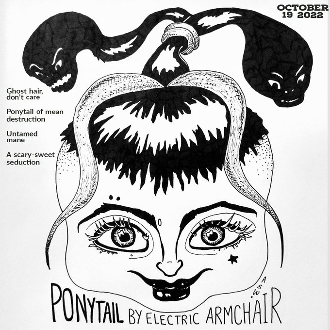 Inktober Day 19: Ponytail Ink on paper Art and poetry by me #ink #toronto #art #sketch #inktober #ponytail #drawing #traditionalart #halloween #spookyseason #october