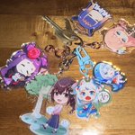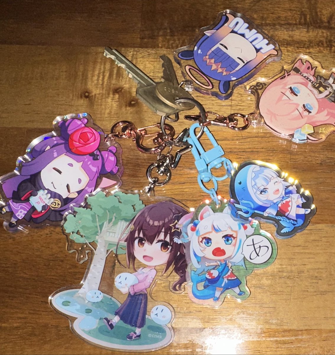 I got more key chain today~ Thanks @Hanh_R_A sensei for her great art work (left Ina and two Gura)💙💜💙💜 #TorontoComicon2023 #gawrt #inart