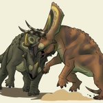 Oh hey! I actually did something similar last year, specifically BECAUSE we never see Torosaurus and Triceratops interacting that much! Can't believe Bakker beat me to the punch by decades xD. #paleoart #triceratops #torosaurus #repost #paleontology twitter.com/ausar_the/st…