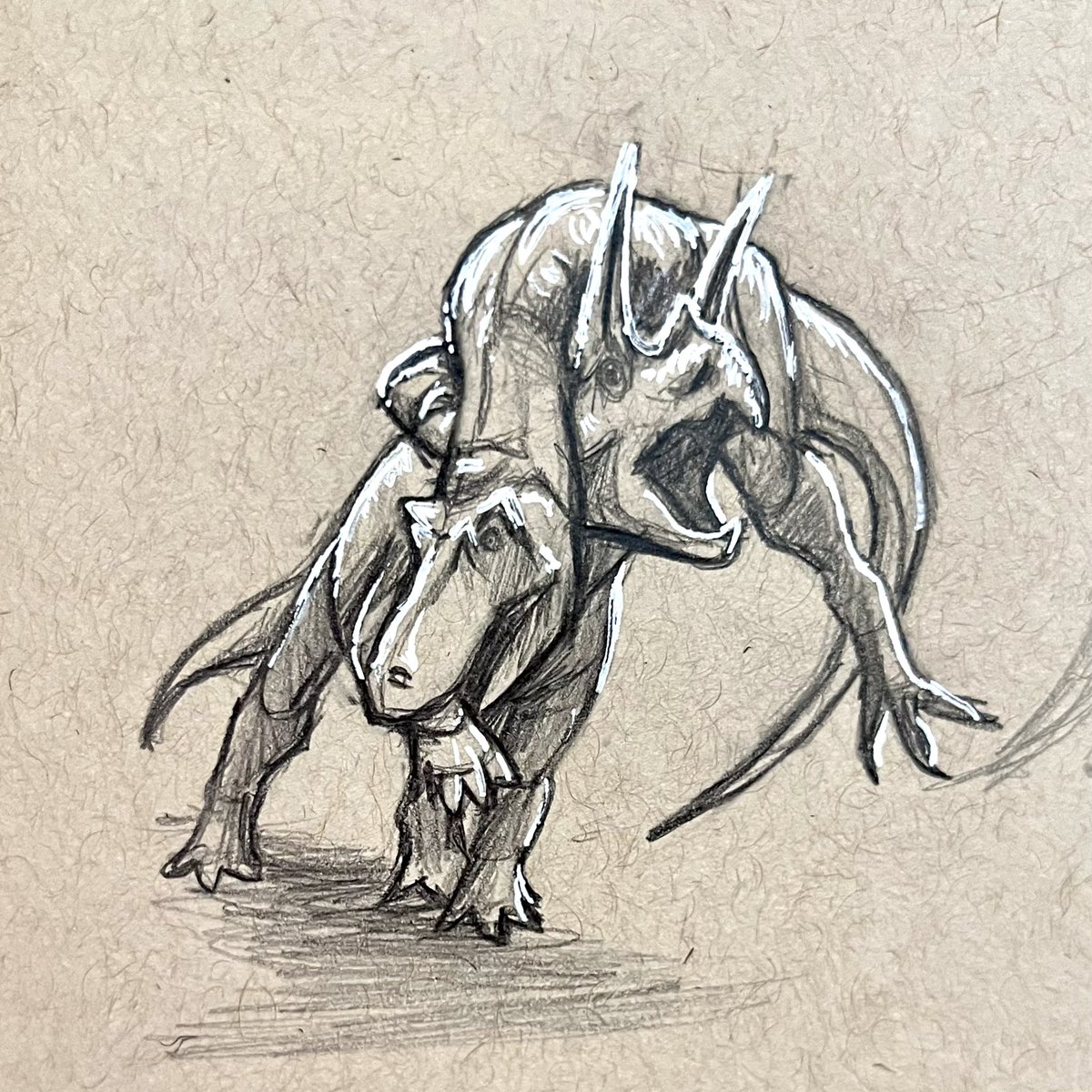 Charlie the #tyrannosaurus getting reckless with a #torosaurus. For @CrkyItsChrstian’s Project Charlie contest. #dinosaurs #art #paleoart #paleontology #sketch #drawing #doodle #ceratopsian #theropod